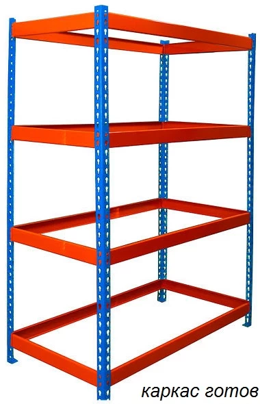 Ярус стеллажа представляет собой наборный настил из оцинкованных стальных полок повышенной прочности, уложенных на каркас из гнутого С-образного металлического профиля.
